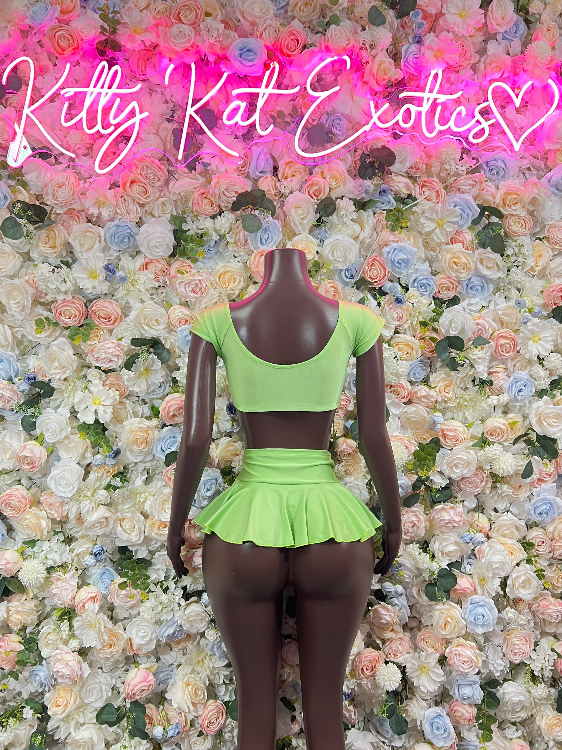 Two Piece Green Skirt Festival Rave-wear Exotic Dancewear for Performers, Raves, & Festival Clothing