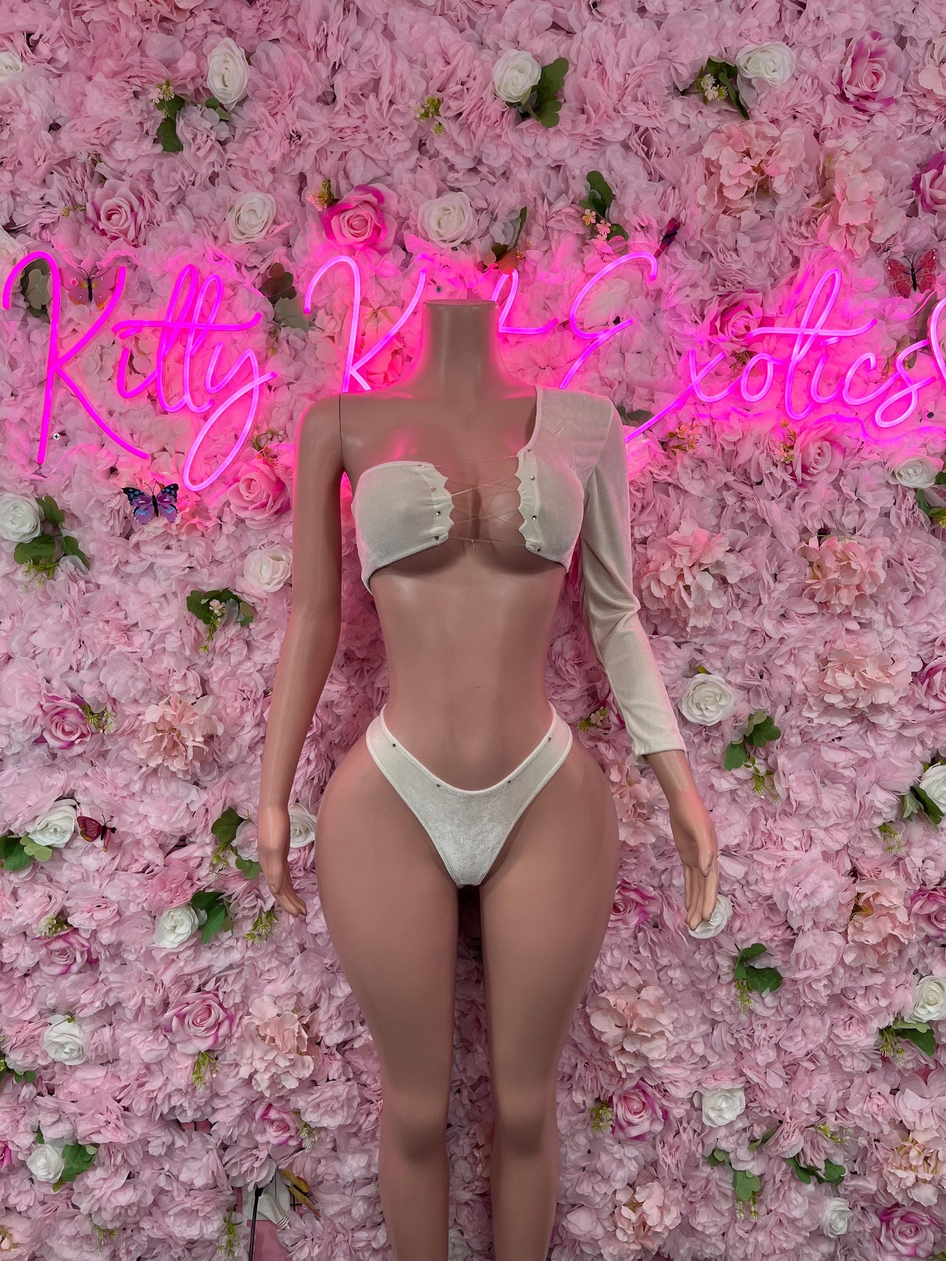 Two Piece One Sleeved Nude Exotic Dancewear Bottlegirl Fedtival wear Bartender Outfit