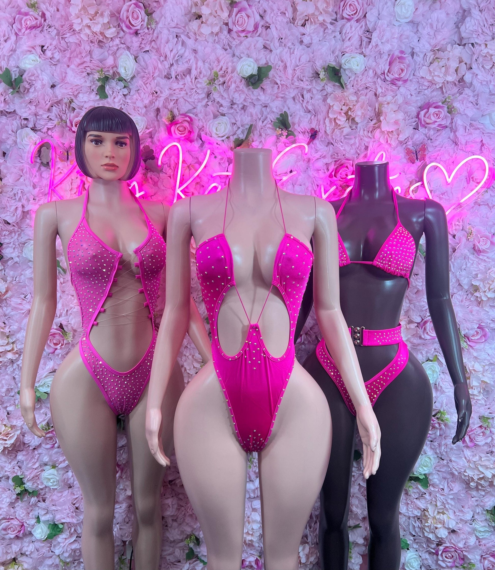 Two-Piece Pink Exotic Dancewear for Performers, Raves, or Night Out | Bottle girl Outfits