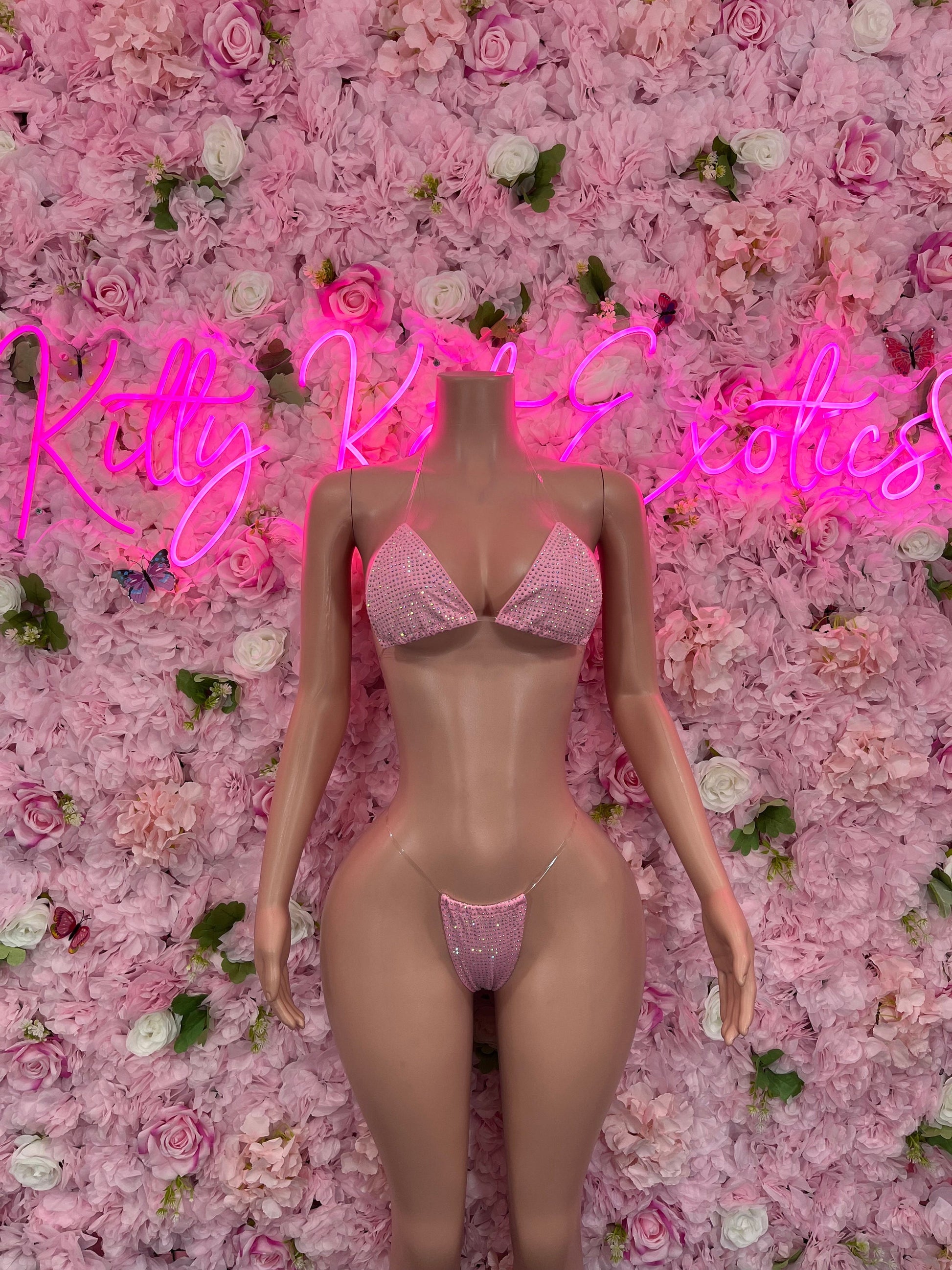 Two-Piece Pink Gstring Bikini Cute Swimsuit Set for Beach, Pool, or Vacation | Stylish and Flattering Swimwear