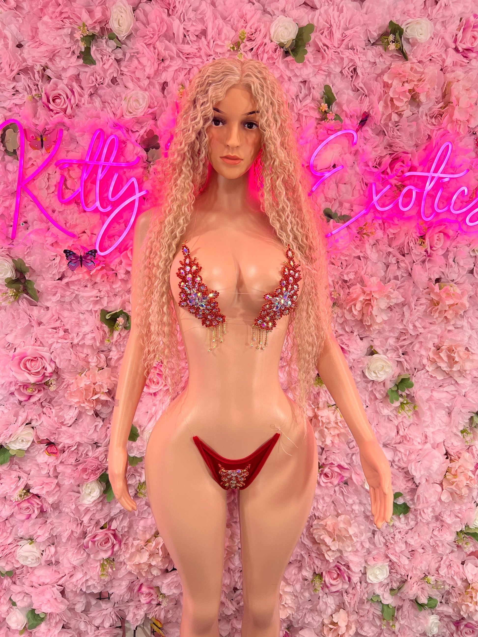 Two Piece Red Rhinestone Dancewear Festival Wear Exotic Ravewear