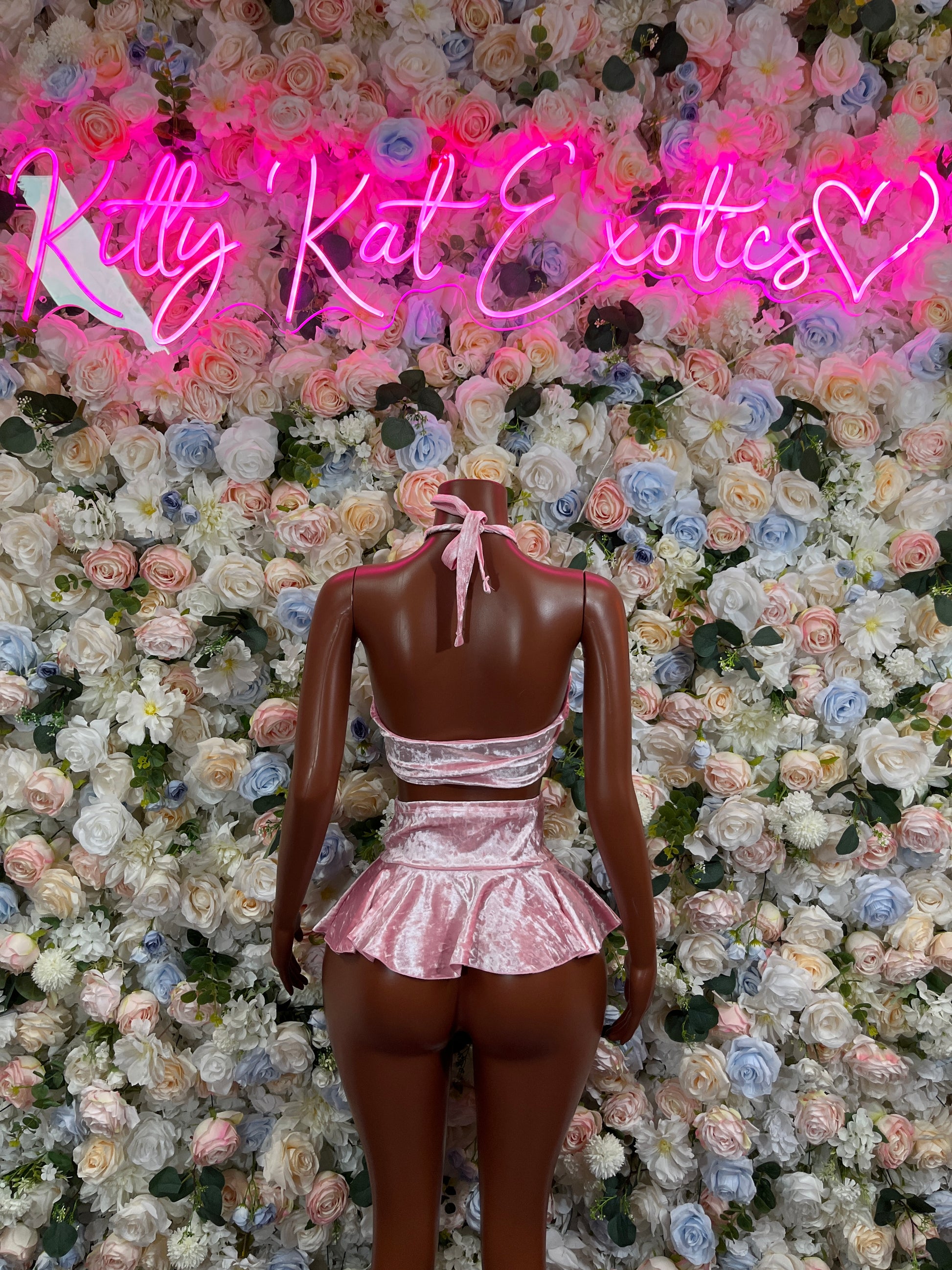 Two Piece Pink Velvet Skirt Set Festival Ravewear Exotic Dancewear for Performers, Raves, & Festival Clothing
