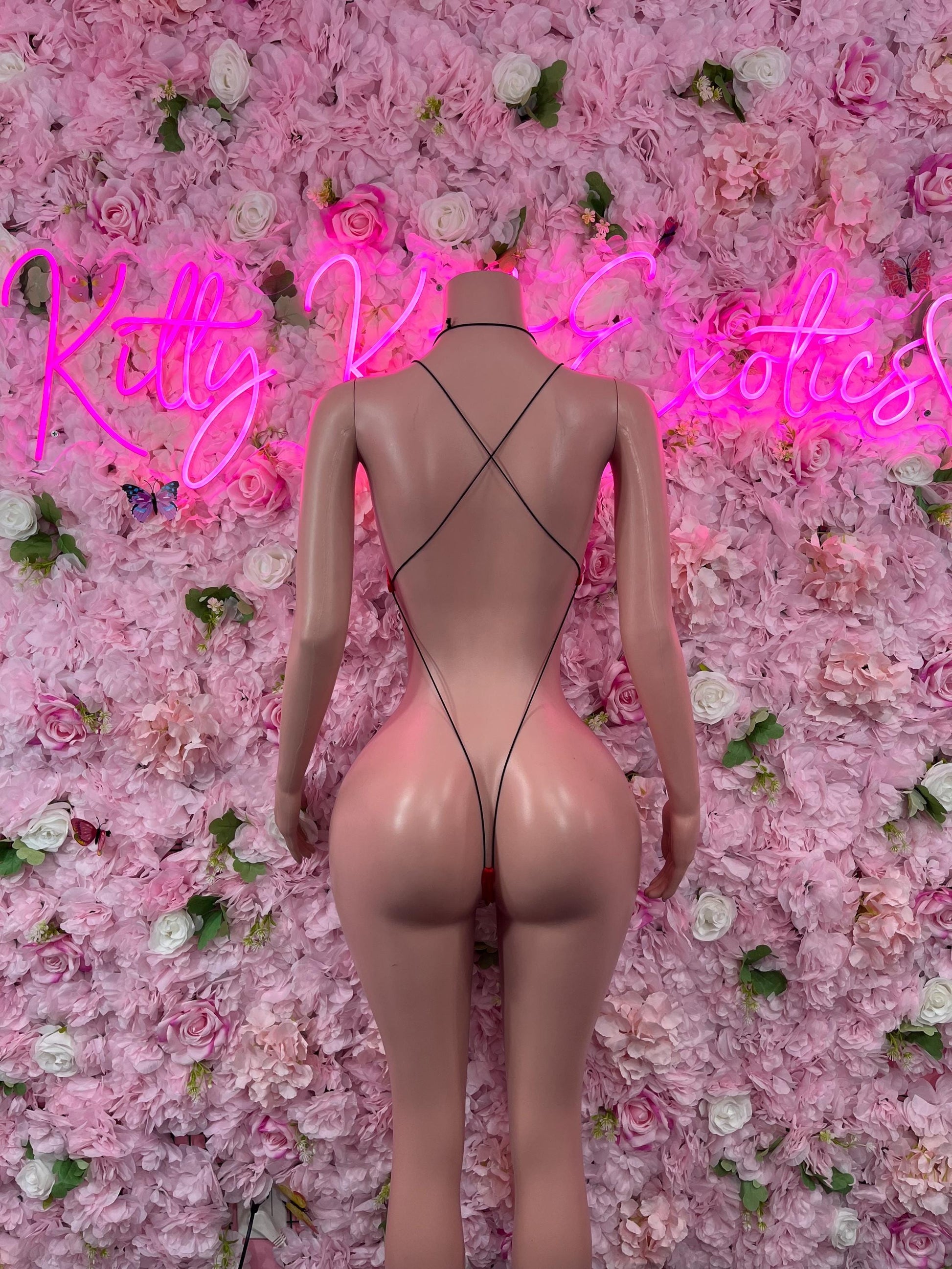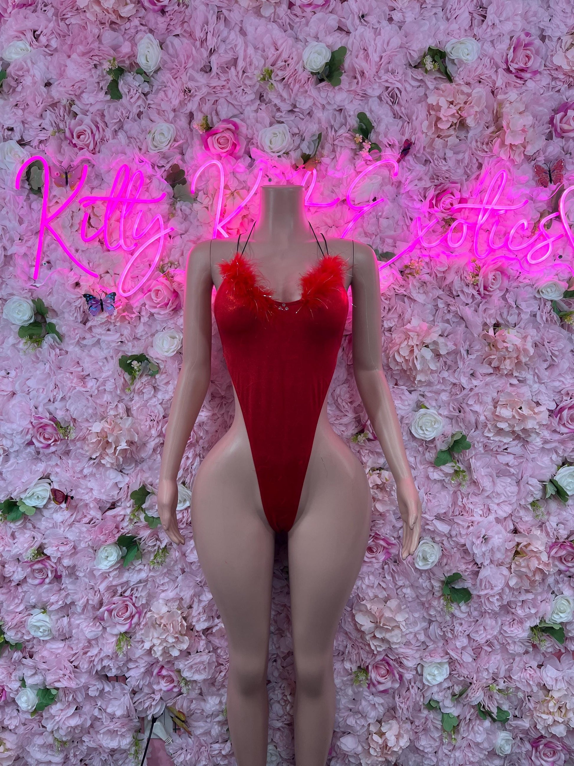 Sexy Santa Christmas Costume - One Piece Red Holiday Outfit - Festive Womens Christmas Lingerie