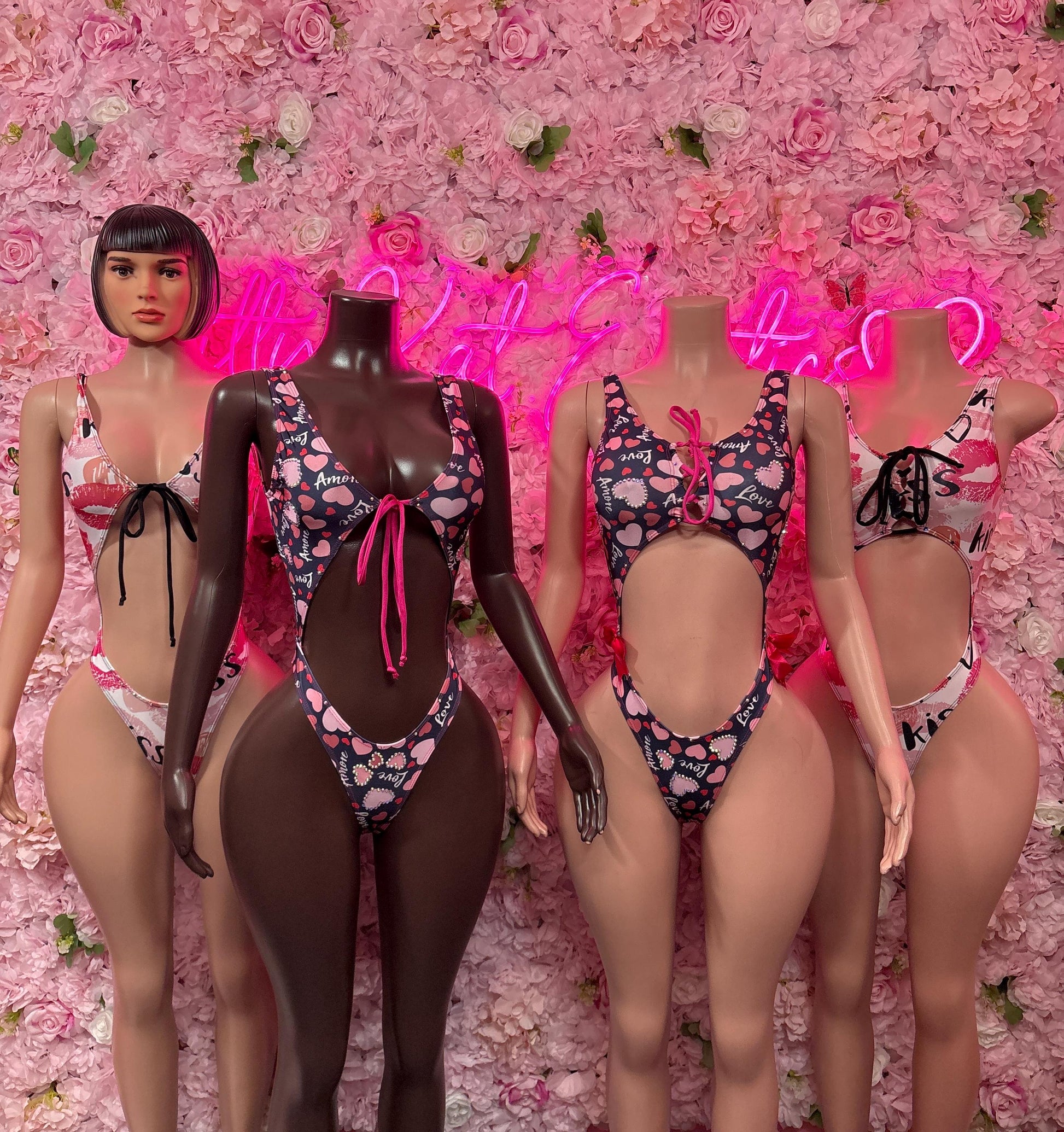 Valentines Day One-Piece Kisses Bodysuit Set - Sexy Romantic Outfit for Date Night - Cute Gift for Her