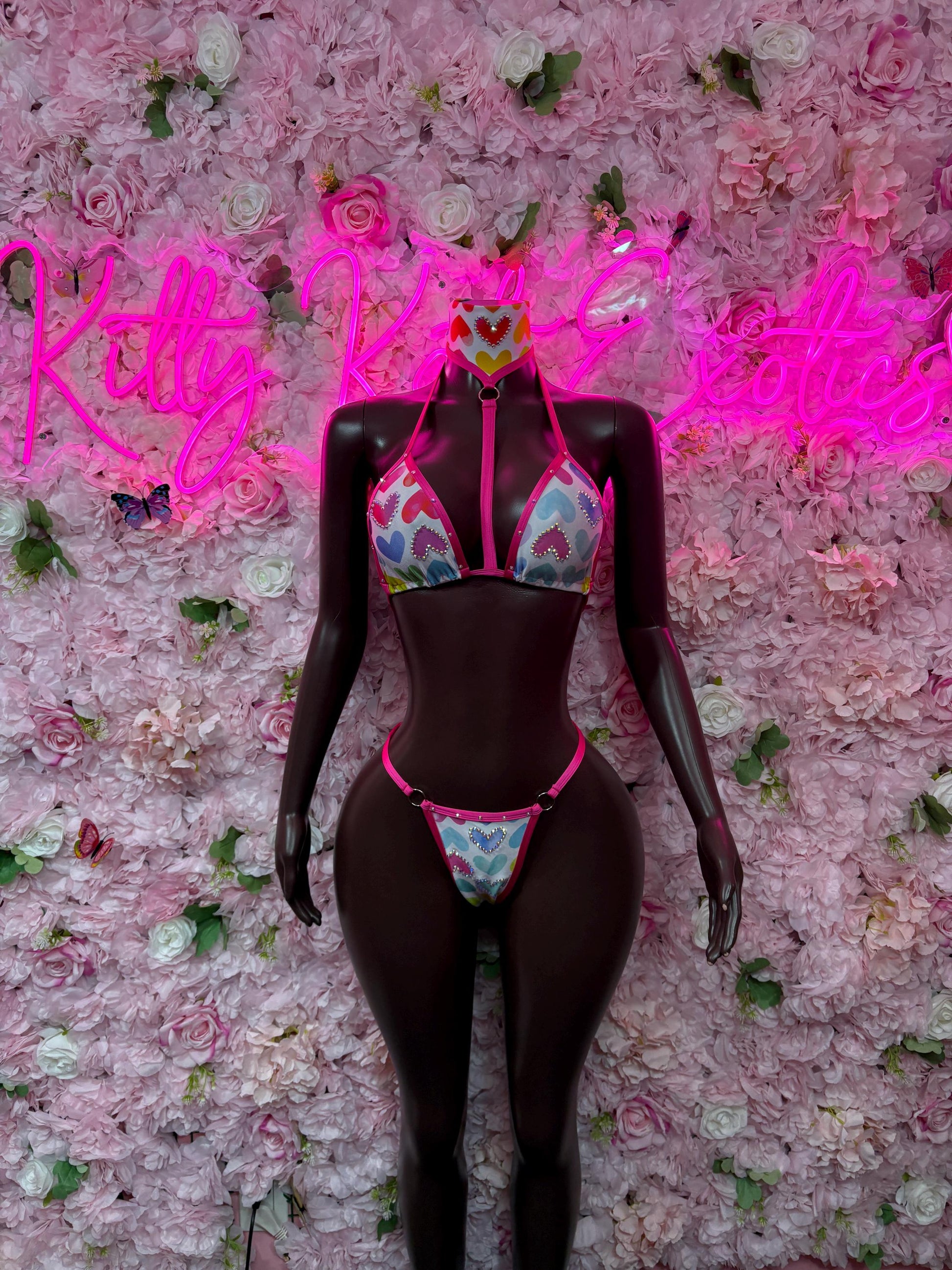Valentines Day Sexy Lingerie Costume Red Heart Bikini Chocker Romantic Dancewear Outfit Exotic Dancer & Bottle Girl Set