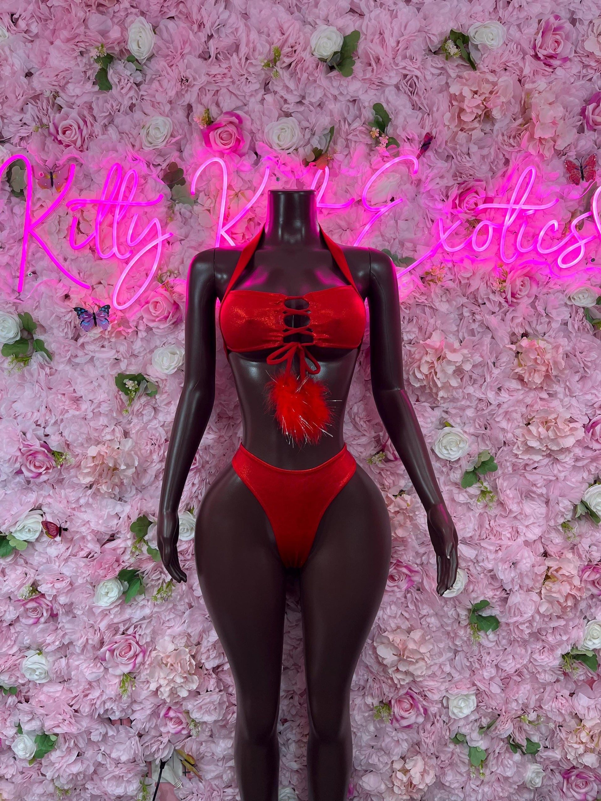 Sexy Santa Christmas Costume - Two Piece Red Holiday Outfit - Festive Womens Christmas Lingerie